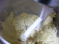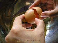 ใช้ตะกร้อตีไข่ให้ส่วนผสมเข้าเป็นเนื้อเดียวกัน |
