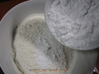 icing 3 ถ้วยตวงใส่ลงในภาชนะผสม |