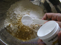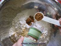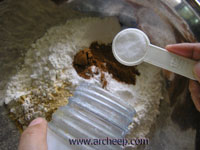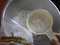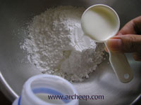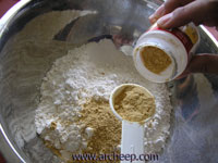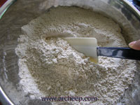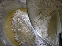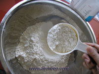 )ใส่แป้งอเนกประสงค์ลงไป 3 3/4 ถ้วยตวง |
