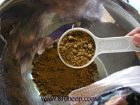ใส่ตาลทรายแดง (ละเอียด) 3/4 ถ้วยตวง |