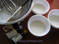 ค่อย ๆ เทส่วนผสมจากชามผสมขนาดกลาง