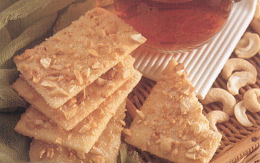 โรยด้วยเม็ดมะม่วงหิมพานต์หรือถั่วลิสงสับและน้ำตาลทราย |