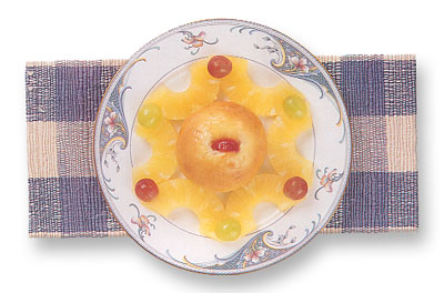 ใช้สับปะรดสดหั่นชิ้นเล็กเสียบไว้ด้านบน