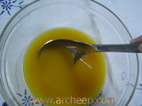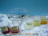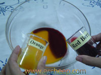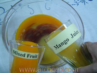 2.เทลงในชามแก้วใบใหญ่พร้อมกัน