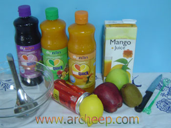 (ผลไม้นานาชนิดหั่นบาง ๆ) |