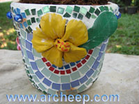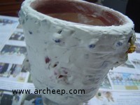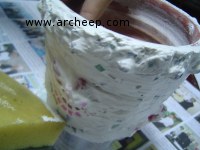 10.ติดชิ้นงานให้เต็มกระถางรอให้ชิ้นงานแห้งสนิททาปูนยาแนวให้ทั่วกระถางอีก