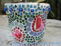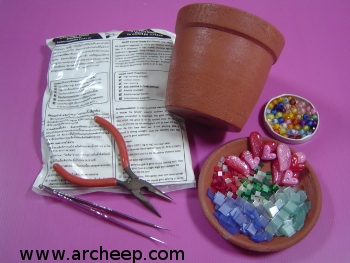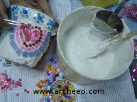 ใช้คีมปากแหลมคีบโมเสคติดลงบนปูนยาแนวจัดวางให้สวยงามตามความเหมาะสมรอให้ปูนยาแนวแห้งสนิท |