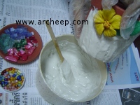 นำปูนยาแนวที่ผสมเสร็จแล้วนำมาป้ายลงบนกระถางตามแนวนอน
