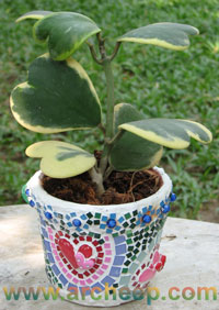 16.สำรวจเรียบร้อยแล้วเราก็นำต้นโฮย่ารูปหัวใจใส่ลงในกระถาง