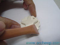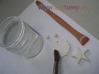 2 ชิ้นให้ติดกันโดยใช้พู่กันจุ่มน้ำเล็กน้อย