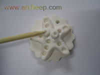 นำไม้ปลายแหลมเจาะเป็นรูลงไปในขณะที่ดินยังไม่ทันแห้งดีเพื่อที่จะร้อยพวงกุญแจ |