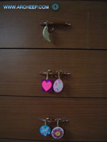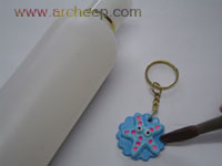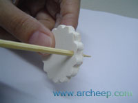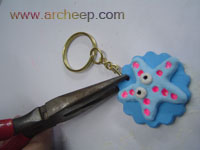 นำพวงกุญแจมาร้อยลงไปตรงรูที่เจาะเตรียมไว้แล้ว |