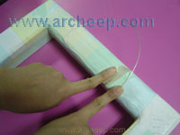 ยึดติดลวดกับกรอบรูปด้วยเทปกระดาษกาว |