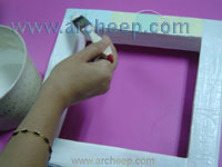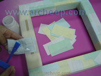 ใช้เทปกระดาษกาวปิดให้ทั่วกรอบทั้งด้านหน้าและด้านหลัง |