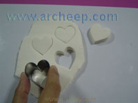 14.นำพิมพ์รูปหัวใจมากดลงบนดินเยื่อกระดาษ
