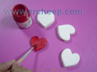 15.นำสีอะครีลิคสีแดงทาชิ้นงานรูปหัวใจให้ทั่ว