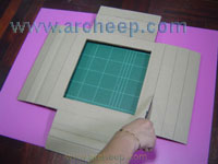 ปิดเทปกาวแล้วก็พยายามจัดรูปกระดาษให้เป็นเหลี่ยมสวยงาม |