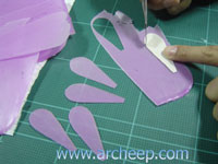 ทำทีละแผ่น (ดังภาพ) เตรียมไว้ทำ (กลีบดอก) หลาย ๆ