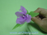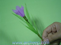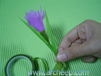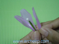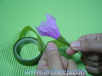 นำเกสรมาพันติดกับลวดโดยใช้ฟลอร่าเทป นำกลีบดอกสีม่วง