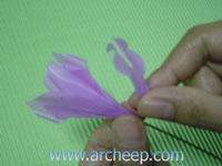 นำไม้จิ้มฟันมาดัดปลายกลีบดอกทั้งสองข้างเข้าหากัน