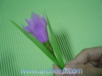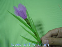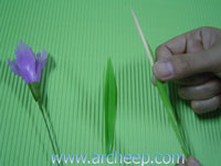นำกลีบใบยาวสีเขียววางติดก้านดอกซ้ายและก้านดอกขวาเข้าหากัน |