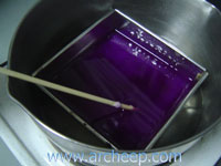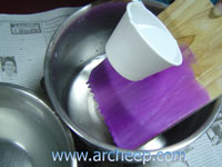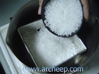 เตรียมภาชนะอีกใบใส่น้ำเย็นราดน้ำลงไปที่