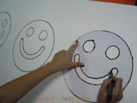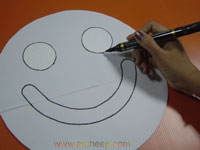 นำกรรไกรมาตัดรูปหน้ายิ้มออก |