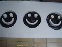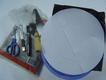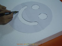 ร่างแบบหน้ายิ้มที่ต้องการลงบนแผ่นโฟมหนา 2 นิ้ว