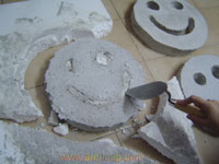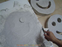 16.ใช้เกรียงฉาบปูนช่วยแกะโฟมรูปตา และ ปากออก
