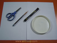 นำกรรไกรมาตัดตามรอยที่ร่างแบบทรงกลม |