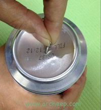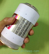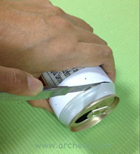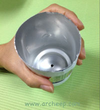 เจาะรูที่ก้นกระป๋องเครื่องดื่มให้เป็นรูตรงกลาง