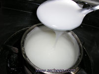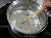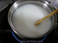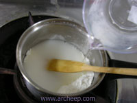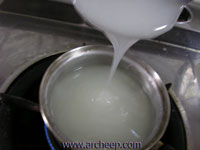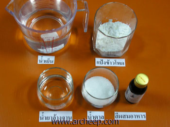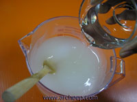 แบ่งตัวแป้งข้าวโพดที่เคี่ยวและผสมน้ำยาล้างจานแล้ว