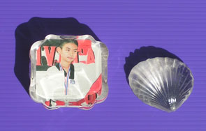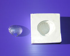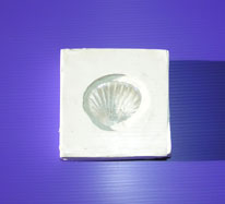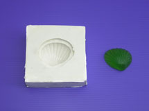 หอยสีเขียวที่อยู่ทางด้านขวามือเป็นสบู่ใสผสมกับสีเขียวที่แข็งตัวแล้ว